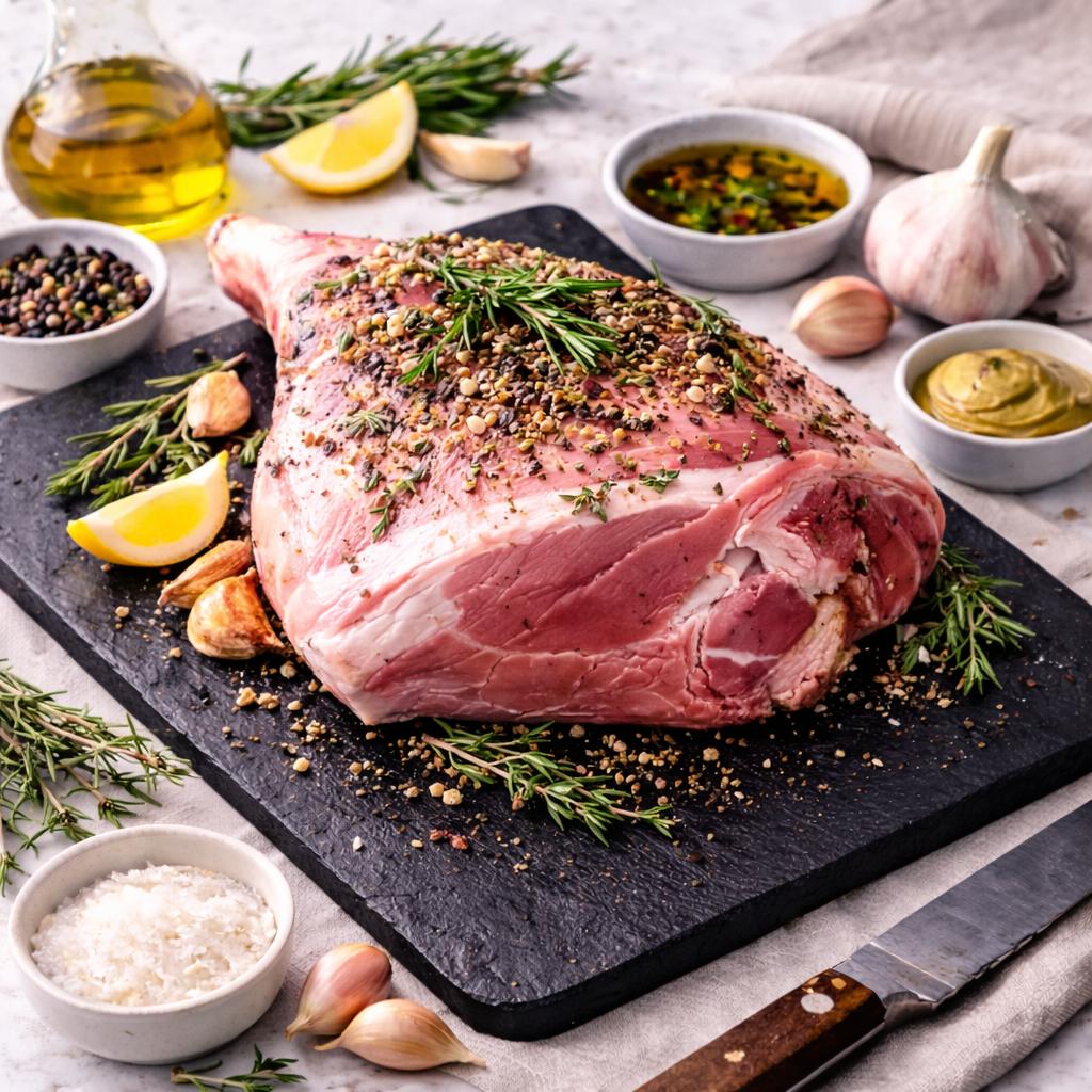 Lamb shoulder on the bone, ideal for slow roasting to bring out rich flavour and tenderness.