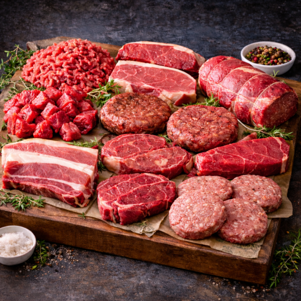 Bring the best cuts of beef straight to your table with our Mixed Beef Box. Perfect for Sunday roasts, hearty stews, and steak nights, this box offers a generous selection of farm-quality beef.